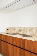 In dit project verzorgde Inbo het maatwerk voor een ontwerp van Scone Architects. De warme bruine tinten contrasteren in een lichte ruimte en zorgen voor een unieke sfeer. In de badkamer realiseerden we een serene ruimte met een rustig en aangenaam design, ideaal om 's ochtends de dag te starten.