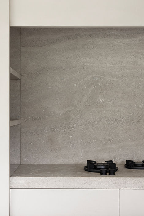 Voor een villa te Wilrijk ontwierp Scone Architects niet alleen een exclusieve keuken met eiland in druppelvorm, de gehele villa werd prachtig gerenoveerd. Deze rustgevende "nude"-stijl werd doorgetrokken naar leefruimte, hal en fitness met indoor zwembad.